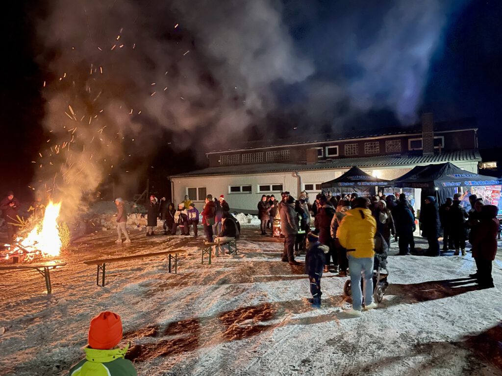 Gemütlichkeit trotz frostiger Temperaturen Ab 16:00 Uhr loderte dann das Feuer auf dem Festplatz. In diesem Jahr meinte es der Winter besonders gut – oder eben besonders streng – mit uns. Bei recht winterlich frostigem Wetter und knackig niedrigen Temperaturen fielen die Besuchszahlen zwar insgesamt deutlich geringer aus als in den vergangenen Jahren, doch die Stimmung litt darunter keineswegs.